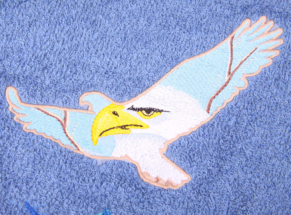 If you are a fan of our feathered friends you will enjoy these bath towels. Towels are embroidered with durable polyester thread. Three towel sizes are available, bath, hand, and wash cloth. Towels are 100% cotton and are available in many different colors.