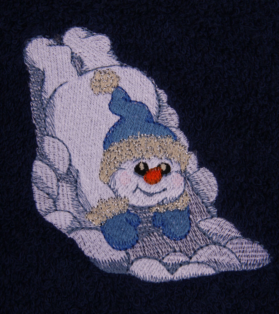 Add to the festiveness of your home with embroidered bath towels featuring Christmas and other seasonal themes. Towels are embroidered with durable polyester thread. Three towel sizes are available, bath, hand, and wash cloth. Towels are 100% cotton and are available in many different colors.
