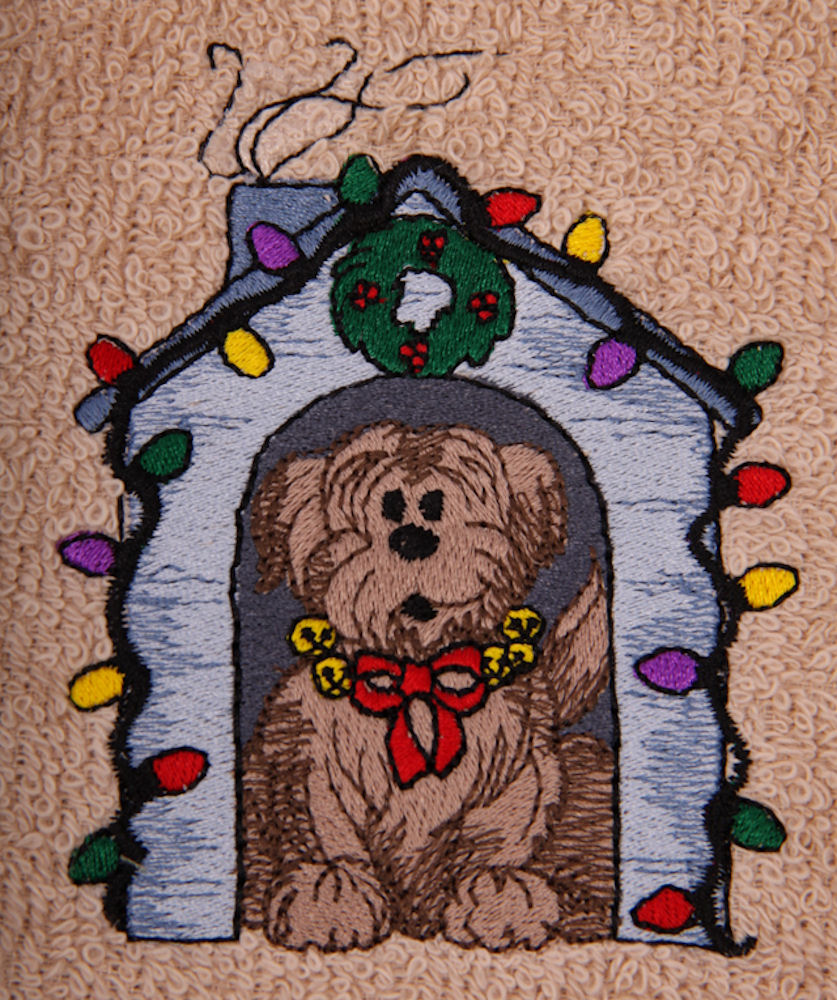 Dog House with Christmas Lights Embroidered Bath Towels
