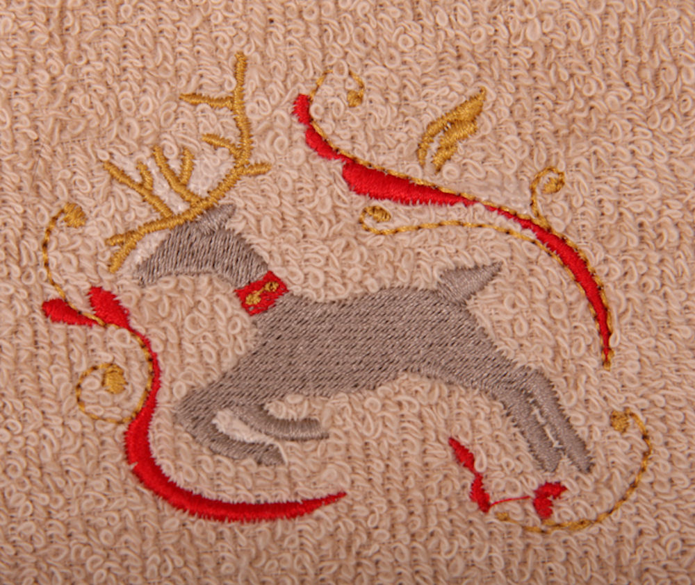 Christmas Reindeer on Embroidered Bath Towels