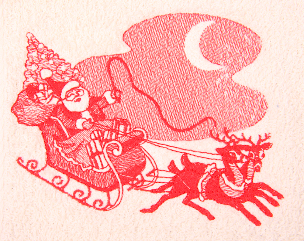 Santa with Sleigh on Embroidered Bath Towels