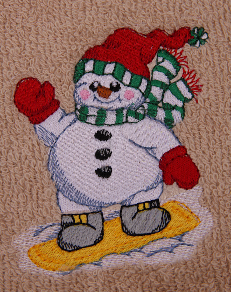 Snowboarding Snowman Embroidered Bath Towels