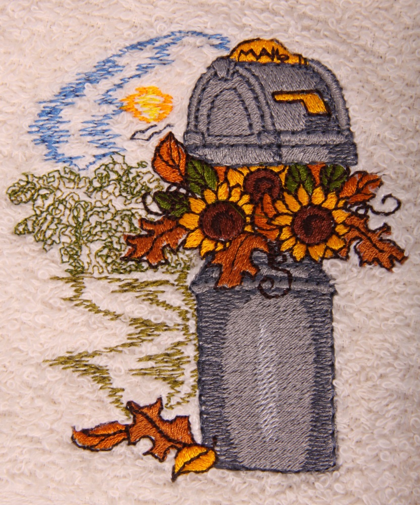 Autumn Pumpkins and Leaves Mailbox Embroidered Bath Towels
