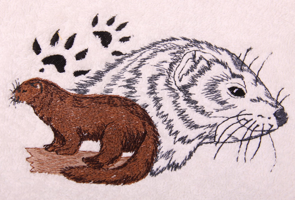 Snowshoe Rabbit and Paw Print Embroidered Bath Towels