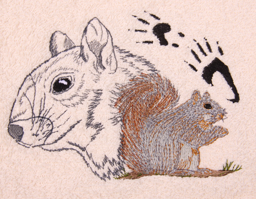 Fox Squirrel with Paw Prints on Embroidered Bath Towels