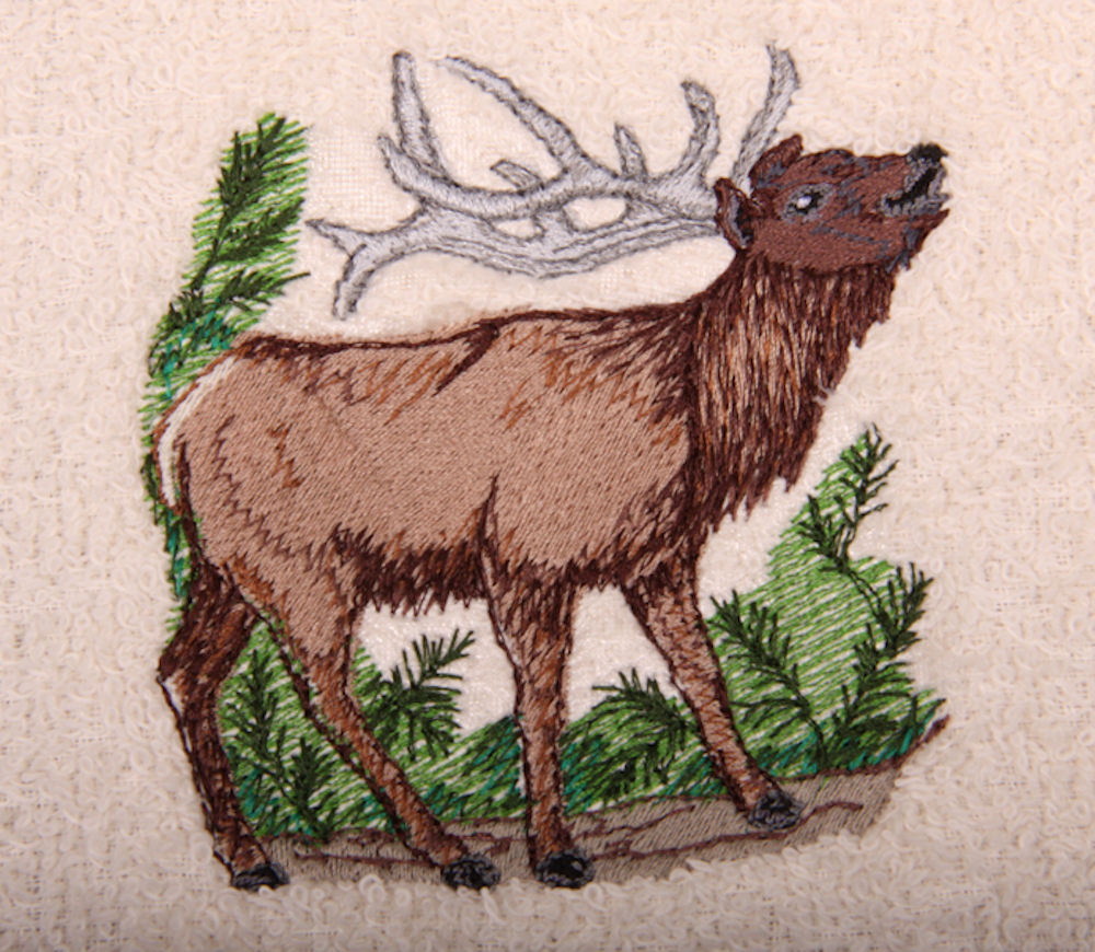 Cabin in the Woods on Embroidered Bath Towels – Wash, Hand, Bath