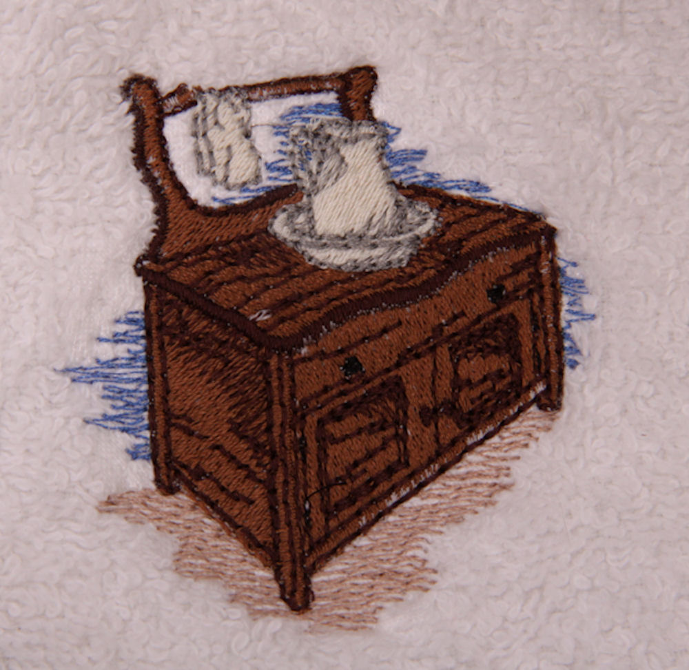 Old Fashioned Wash Stand on Embroidered Bath Towels