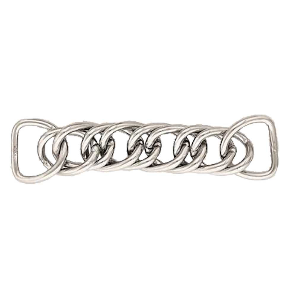 Stainless steel miniature horse size curb chain. Single Curb chain is 3 1/2 inches long with a D ring on each end.