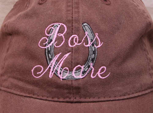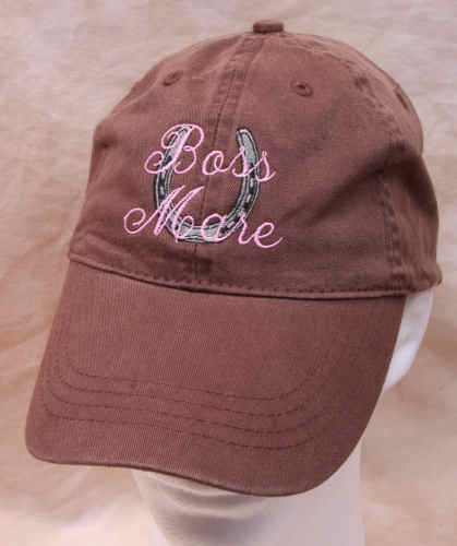 Boss Mare Pigment Washed cap with horse shoe in 100% cotton twill with metal buckle. Cap adjusts so one size fits most. Cap is available as solid color or with contrasting bill.