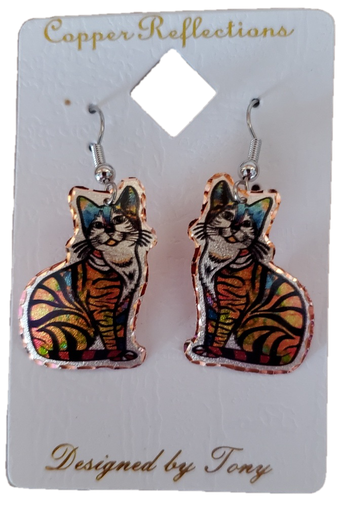 Copper Reflections Earrings Tiger Stripped Cat Design