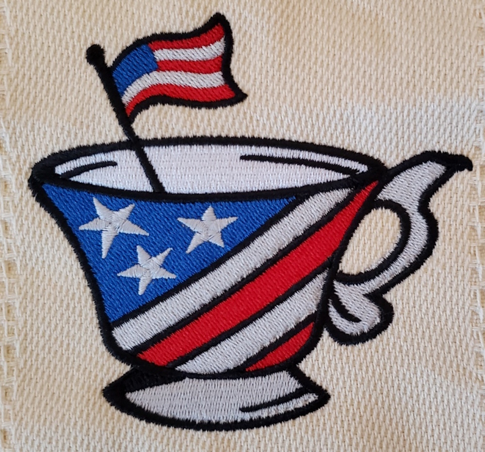 Embroidered Patriotic Tea Cup Natural Dish Towel