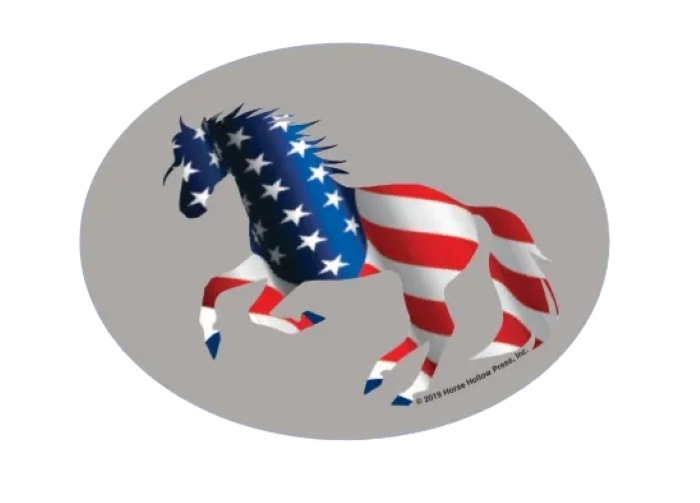 Euro Horse Oval Sticker: Full Color American Flag Horse