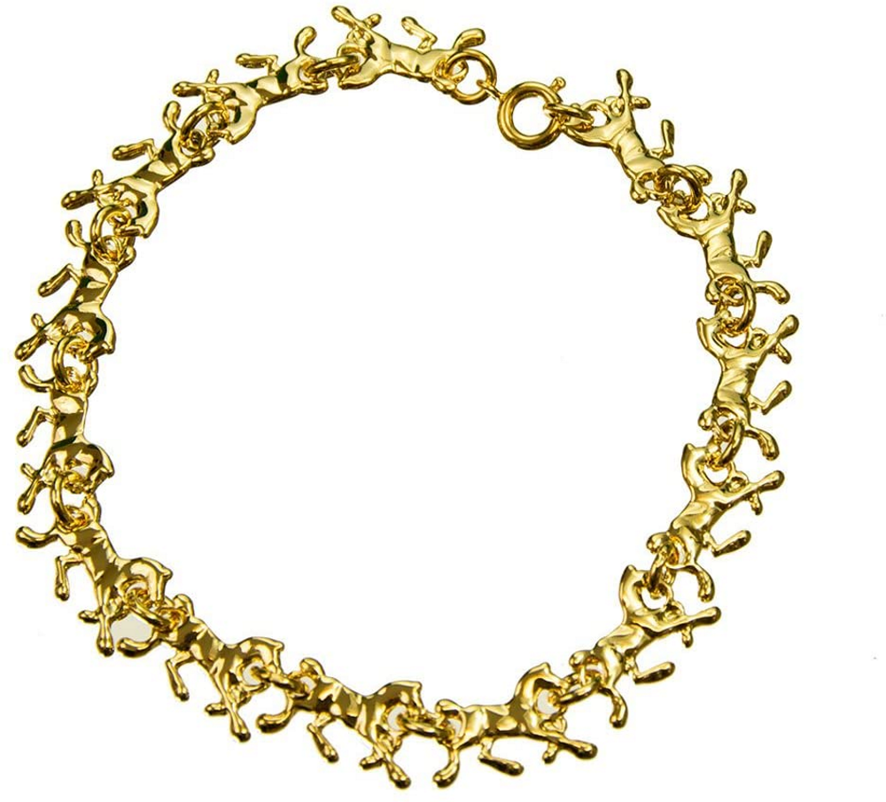 The Exselle Running Horses Bracelet is a beautifully detailed in gold plate or platinum plate. Gift boxed in blue velvet.