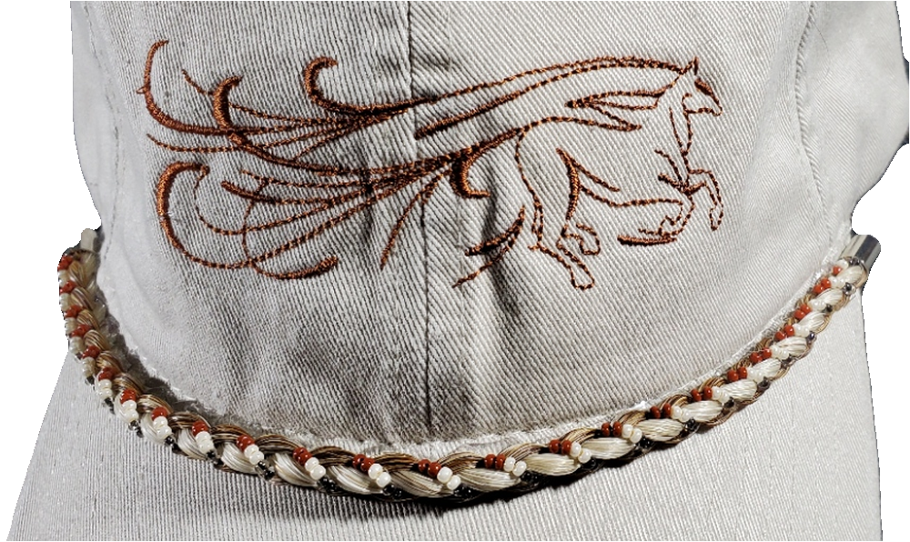Galloping Horse Embroidered Cap with Horse Hair Braid