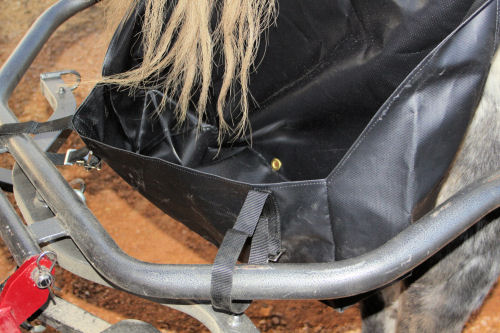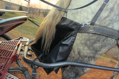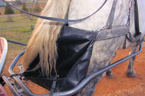 Black horse diaper conveniently attaches to a harness using snaps and two adjustable nylon straps. Made of heavy-duty waterproof vinyl. Chrome brass, nickel plated and solid brass hardware. Easy To Clean. Fits horse and draft horses.