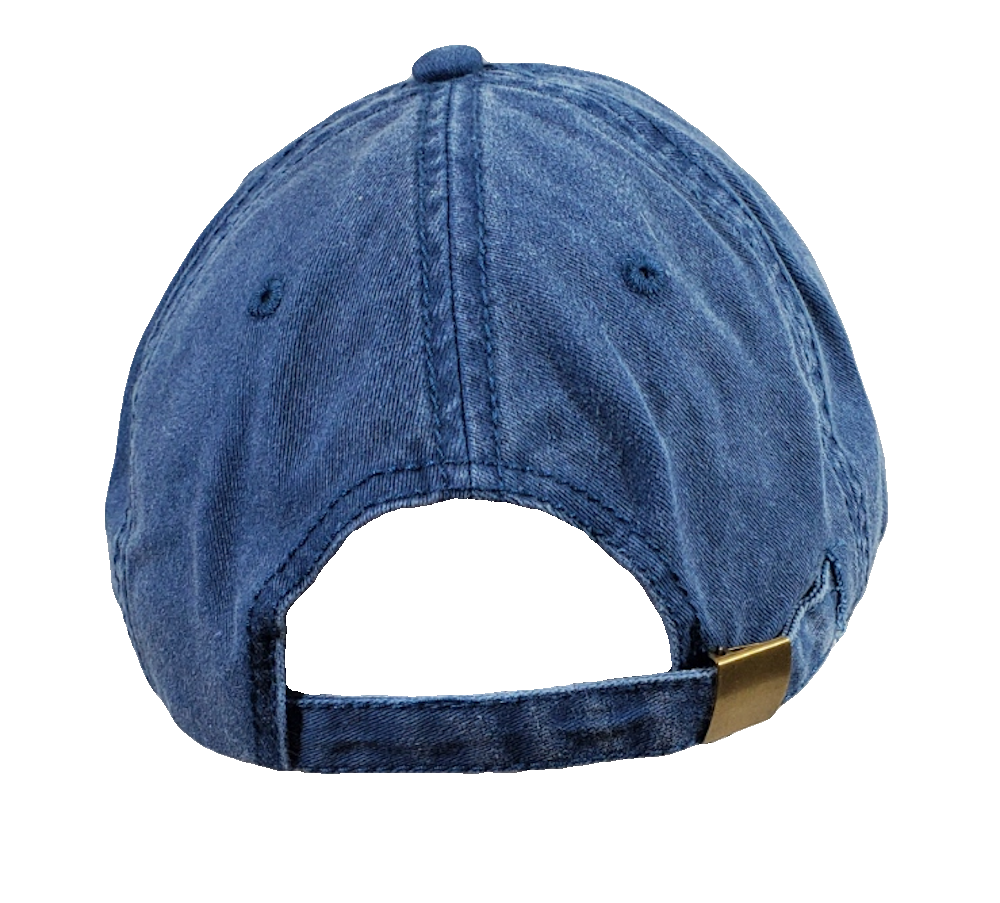 Horseshoe and barbed wire Embroidered Cap is made of 100% cotton twill. Cap has a braided beige and brown horse hair band. Cap adjusts so one size fits most. Available in denim blue.