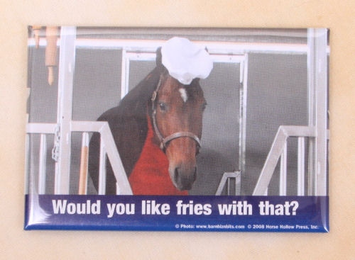 The 2 1/8″ x 3 1/8″ magnet reads “I base most of my fashion taste…on what doesn’t itch!” Great to display on the refrig or any metal surface.