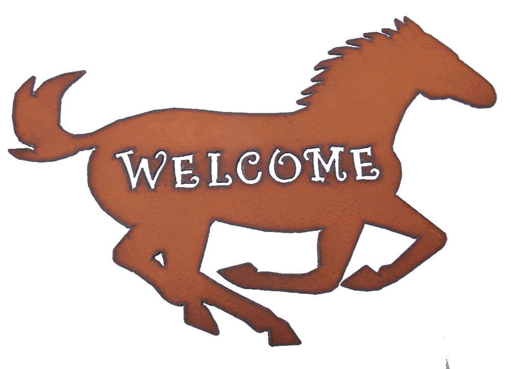 Rustic Metal Sign Shaped as Running Horse with Welcome