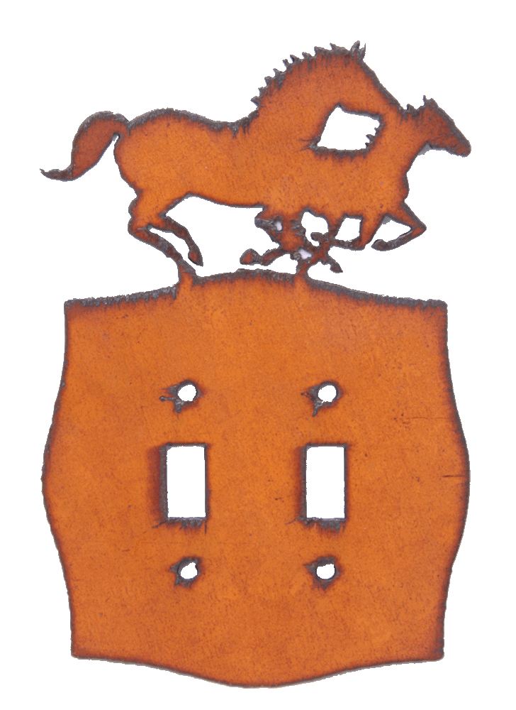 Rustic Metal Two Running Horses Single or Double Switch Plate