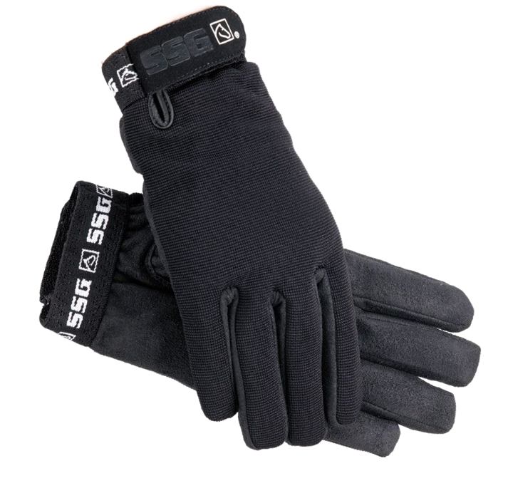 SSG All-Weather Lined Gloves are excellent for winter exercising or arena riding. Unlined Aquasuede palm is soft, colorfast, sweat absorbing, and breathable. Thinsulate lining on back of hand and thumb provides 1 1/2 times the warmth of down, and about twice the warmth of other high loft insulation materials. Hook and loop wrist closure. Excellent grip any weather condition. Product Features: