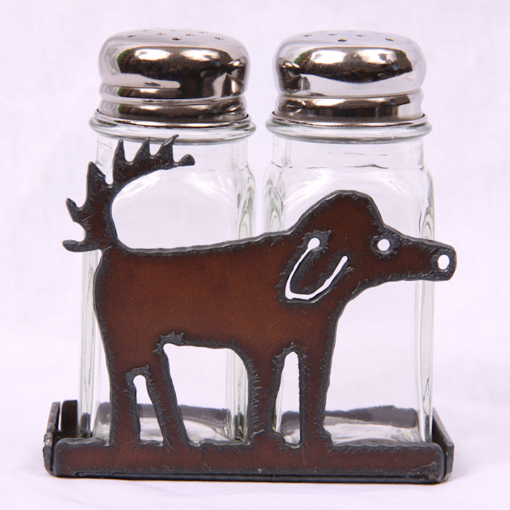 A white horse and a black horse make up a pair of salt and pepper shakers. The ceramic shakers are 4″ tall and 4 1/2″ long. Contemporary design. Together they make a unique decoration for any table,